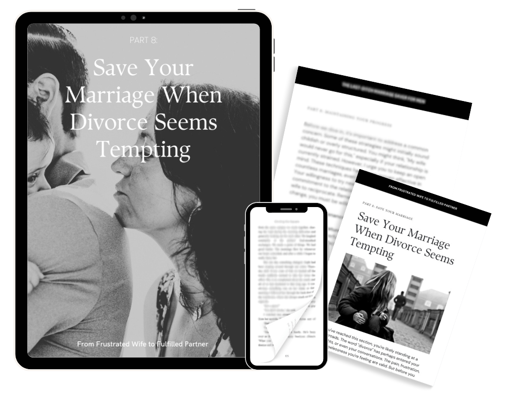 In From Frustrated Wife to Fulfilled Partner, I really thought of everything – and I know you'll find these strategies as valuable as I did when it came to saving my own marriage.